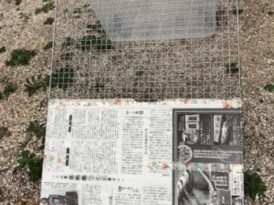金網に新聞紙でネズミ返しを作る